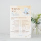 Bring smiles and friendly competition to your baby shower with this “Would She Rather” game card. Featuring a sweet watercolor elephant swinging on a cloud with soft golden stars, the design captures a dreamy nursery vibe while guests guess the mom-to-be’s preferences. A fun and charming baby shower activity.
