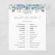 Cartão de jogo de chá de panela com uma cascata de cor d'água de florais azuis. Uma maneira divertida de interagir com convidados de chá.