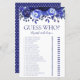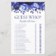 Esta bela folha de chá de panela azul floral Adivinha Quem? É elegante e encantadora - perfeita para qualquer jardim, botânica, rústica, romântica, floral, formal ou casamento vintage. Sua combinação requintada de rosas azuis graciosos e de verde sabedoria é fluida, delicada e bonita. Este jogo fácil e divertido traz muitas risadas a qualquer chá de panela! Basta dar uma folha a cada convidado (não se esqueça das canetas) e deixar a diversão começar! Ficará surpreso com quantas respostas as pessoas realmente conhecem. Para torná-lo seu próprio simples selecione Personalizar este modelo e digite o nome da noiva e o nome do noivo.