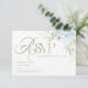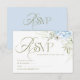 Elegant floral Wedding RSVP Card, featuring a pastel blue delicate hydrangea floral arrangement and elegant typography.