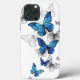 Flying Blue Butterflies morpho and white butterflies on a light abstract background. Morpho. Design with blue butterflies morpho.