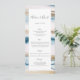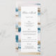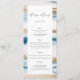Cartões de Menus ou programas de casamento para o seu casamento para combinar com os seus convites de casamento de cor d'água azul. Primeiro ao terceiro curso e bebidas são incluídas para você personalizar. A página traseira é vazio para texto adicional opcional.