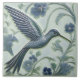 Alivio azul de índio e verde-hortelã azulejo cerâmico Hummingbird inspirado pelo Art Nouveau e pelos movimentos Artes e Artesanatos com fundo floral. Perfeito para um presente de inauguração de casa usar como trivit ou para adicionar um azulejo decorativo na sua própria lição. O azulejo de cerâmica é liso, com um efeito falso 3D. Este é o azulejo virado para a direita. Emparelhe-o com o azulejo virado para a esquerda para um decor de colocação simétrico.