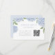 Este lindo cartão azul de cerimônia floral de hydrangea apresenta flores azuis de cor aquática e seu código QR personalizado. Use a modelo para preencher suas informações. O recurso "Personalizar mais" pode ser usado para alterar a fonte (tamanho, estilo, cor) e adicionar mais linhas de texto, alterar o layout e adicionar texto ao verso.