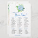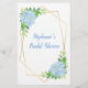 Este cartão de jogo de chá de panela é O que há na sua bolsa? O design apresenta flores azul-aquarelas hydrangea e design geométrica falsa dourada no verso. Personalize a parte de trás das cartas com o nome da noiva. Produtos correspondentes disponíveis.