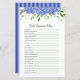 Esta folha de chá de panela "Encontre alguém" trará muita diversão e risos ao seu chá de casamento! Isso fará com que seus convidados se levantem e se conheçam enquanto tentam encontrar alguém para ajustado em cada uma das 20 categorias. Este jogo não é uma tarefa simples e seus convidados vão ter uma explosão jogando! Ficarão chocados com o que aprendem uns com os outros e com a noiva. A página é bonita com várias faixas azuis, vegetação natural, e com riscas azuis correspondentes. É perfeito para qualquer casamento boho, rústico, botânico, floral, jardim, romântico, vintage ou formal.