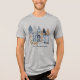 Camisa Tri-Blend dos Homens de Natal Cristão com design de tipografia e árvores de Natal azuis modernas, cruz e nome familiar personalizado. Personalize facilmente o nome e mude um tipo e cor da t-shirt - Kate Eden Art