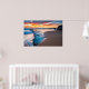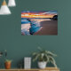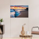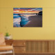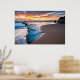 Featuring a breath taking view of a Cold  Blue Ocean and sky scape leading out under a orange and blue sky along the sandy shore.this is a beautiful photo on this poster