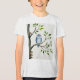 The owl itself is painted in light blue and gray tones, with large black eyes.