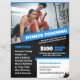 A professional flyer design great for fitness coaching and personal training services for women. Whether you help people with weight loss, strength training, nutrition meal planning and coach exercise classes and fitness boot camps, this is a great flyer to advertise your services and classes. There is also room for a motivational quote on the back. The design has a black grunge background and if the blue doesn't work for you, all the areas of blue can be changed to another colour in the Editor.