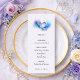 Modern abstract wedding menu featuring a blue, purple and gold watercolor heart with elegant alcohol ink texture. A clean and minimalist design perfect for displaying your reception dinner courses. Easily personalize each section. Matching invitation and stationery available in the collection.