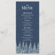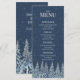 A beautiful menu for your rustic winter wedding table with a snow covered night forest in dark blue and white. Customizable with your dinner details, available in a wide range of matching wedding products.