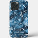 Blue Shimmer Modern Girly Paisley A capas de iphone personalizada apresenta um martelo azul na moda com uma delicada camada de padrão uniforme branco. Personalizado com seu nome, editando o texto na caixa de texto fornecida. Elaborado por ©Evco Studio www.zazzle.com/store/evcostudio