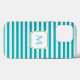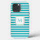 Blue Striped Cell Phone Case with Decorative Monogram