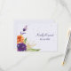 Este cartão RSVP apresenta um buquê floral moderno em cores predominantes de laranja azul, violeta, dourado e tangerina. A imagem floral de aquarela é colocada na borda inferior esquerda, com seu texto personalizado em azul no centro. As imagens e o texto são colocados sobre um fundo azul-cinza claro, com pedaços de ouro-confete. A parte de trás do convite são cinzas leves que facilitam a marcação do seu respondente e com o seu texto em azul correspondente. Elegante, moderno e apropriado para casamentos em qualquer estação! Certifique-se de ver os produtos de casamento correspondentes na nossa loja.