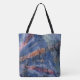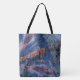 Blue Tie Die Crossbody Tote Bag is a unique one-of-a-kind design. Use it for shopping, for work, for school, and for everyday living. This tote has splashes of multiple colors including peach, mauve, green, blue, and black.