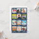 Cartão de Natal ou Feriado azul e branco com 12 imagens fotográficas, flocos de neve e texto para cada mês do ano. Do lado, ele tem a citação "Que ano" e o nome da família ou qualquer texto personalizado que você gostaria de adicionar.
