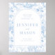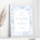 Bem-vindos aos seus convidados em estilo clássico com este charmoso sinal de poster de boas-vindas boêmico azul claro e branco, montado em conselho de espuma durável. Apresentando um padrão requintado de chinoiserie inspirado pela porcelana azul, este cartaz adiciona um toque de delicada elegância à sua entrada de casamento, estabelecendo o tom para sua celebração imersa na beleza da natureza. O download instantâneo também está disponível.