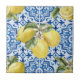 Beautiful classic Mediterranean style pattern with watercolor lemons on ornate decorative blue tiles.