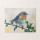 Bluebird oriental no quebra-cabeça coberto gelo do