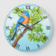 design original de arte de um pássaro azul do leste pela artista aviária Carolyn McFann do Two Purring Cats Studio num relógio de parede de alta qualidade. Excelente de presente para pássaros selvagens e fãs de pássaros!