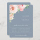 Lindo arranjo floral em rosa bege água, convite de casamento. Design de tipografia branca moderno e chique. Cor de fundo mostrada em azul poeirento, pode ser personalizada.
