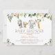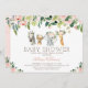 Blush Floral Foliage Safari Chá de fraldas Convite Blush para chá de fraldas floral convite para uma menina com quatro animais safari fofinhos, algumas flores brancas e esbranquiçadas coloridas e verde. Ideal para um chá de fraldas de menina temida por safari.