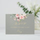 The Blush Floral & Wreath RSVP - Sage features the bride & grooms first initials and a blush pink floral bouquet on a sage background. The back has details for the recipient to fill out. Designed to coordinate with the "Floral & Foil Botanical Wreath" Wedding Collection. To change details, click «Personalize». To move the text or change the text size, font, or color click «Click to customize further» initials