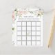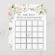 Placa de bingo chá de fraldas com cor d'água rosa pincelada florais e verde. Uma maneira divertida de interagir com os convidados do chá enquanto a futura mãe abre os presentes no chá de casamento.
