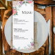 The refined serif typography pairs beautifully with the floral corners, creating a graceful balance between classic sophistication and modern simplicity. The clean white background keeps the design airy and polished, ensuring your menu selections remain easy to read while enhancing your overall table décor.