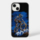A bold BMX street-style illustration of a rider performing a trick, featuring dynamic blue and orange splashes with graffiti-inspired text reading “BMX – Urban City.”