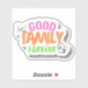 Celebre a família com o nosso adesivo "Boa Família para sempre"! Com uma mensagem animadora, este design vibrante é perfeito para álbuns, álbuns de fotos ou decoração doméstica. É ideal para mostrar seu orgulho familiar em laptop, garrafas d'água, e muito mais. Um belo lembrete de que os laços familiares duram uma vida!