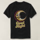 Sai em estilo com esta camiseta retrô de Lua Boa Noite. Apresentando uma lua crescente sorridente e uma letra vintage, esta camisa gráfica acolhedora faz a camisa noturna perfeita ou um visto casual para os sonhadores. Uma mistura divertida de nostalgia e conforto, é ideal como uma camisa de sono, roupa de solteiro, ou um presente único para qualquer pessoa que ame vibrações celestiais.