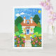 Um cartão "Boa Sorte com a Sua Movimentação" com uma saudação sueca e uma cabana bonito de uma colagem de papel pintada à mão por Judy Adamson. O dentro é o vazio deixado para a sua própria mensagem e a saudação frontal pode ser alterada contatando-me através da minha loja.