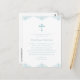 Este cartão postal de convite para batismo de meninos azuis e brancos apresenta uma cruz azul pastel e um design azul decorativo no topo e no fundo. O texto azul pode ser alterado para se adequar a uma Primeira Comunhão ou a uma confirmação. Adicione seu endereço de retorno à parte traseira e qualquer texto adicional, se desejar.