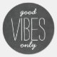 Tímulos motivacionais modernos e modernos que têm um design de tipografia branca que diz Good Vibes Apenas num legal fundo negro de quadro negro.