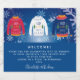 Um rótulo para férias divertidas, festas de Natal e jantas. Esta etiqueta é enviada para a parte de trás de uma garrafa juntamente com a nossa etiqueta frontal correspondente. Mas também pode ser usado como um rótulo frontal. Um fundo azul com grandes flocos brancos de neve, cristais. Decorado com suéteres de Natal feios, vermelhos, brancos, laranja e azuis Personalize e um título, as boas-vindas aos seus convidados e o seu nome. Os nomes são escritos com um script de estilo manuscrito de tendência. Rótulo frontal correspondente disponível em nossa loja.