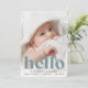 Um design de anúncio de nascimento doce e elegante que apresenta um cheio sangrando fotos horizontais ou paisagísticas com "boas-vindas" sobrepostas em letras retrorreflectoras ao longo do fundo. O nome do seu bebê e as estatísticas de natalidade aparecem abaixo. Adicione uma foto adicional ao verso, juntamente com uma mensagem pessoal.