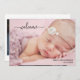 Um simples anúncio de nascimento com a foto do seu recém-nascido e uma sobreposição de "boas-vindas" em uma fonte branca estilosa. Basta adicionar o nome do seu bebê e a data de nascimento. O verso, com um "obrigado" estiloso, é o local perfeito para uma mensagem personalizada e outra foto. Basta clicar no botão de editar/personalisar para personalizar este design.
