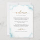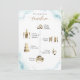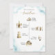 Bem-vindos aos seus convidados com esta carta maravilhosa com uma linha do tempo elegante na frente e a mensagem de boas-vindas nas costas. Linha do tempo com ícones de aquarela em belos matizes de ouro. Tanto frente como verso com delicadas manchas de cor azul empoeiradas e com areias douradas. Detalhes da caligrafia escrita à mão moderna em ouro. Capacidade de "agarrar e mover" imagens de ícones de linha do tempo para uma ordem diferente para se adequar ao seu evento selecionando personalizar ainda mais.