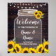 Bem-vinda Poster Sunflower Jar Wood - perfeito para o seu dia de casamento ou evento. Corresponde à nossa coleção.