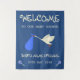 Azul Escuro E Creme Com Imagem De Armazenamento Bem-Vindo Ao Nosso Chá de fraldas Com Opções Personalizáveis Para Nome E Data Do Bebê. Uma Peça De Parede De Na moda para Acima De Uma Mesa De Tela Na Avenida Do Chá de fraldas.