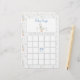 Torne a abertura de presente ainda mais divertida com este doce e bobo cartão de bingo! Apresentando um ganso de dapper em um arco azul e florais de safra macia, este jogo permite que os hóspedes marquem itens de temática bebê à medida que são desempacotados. É interativo, encantador, e mantém todos engajados durante a celebração!