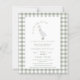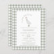 Celebre em estilo com este charmoso convite para o chá de fraldas "Um Pequeno Ganso Bobo"! Apresentando uma ilustração de ganso branco, borda verde suave de gingham, e tipografia divertida, esta design é perfeita para honrar a futura mãe. Ideal para formatos impressos e digitais, é uma maneira doce e moderna de juntar pessoas amadas para um dia especial.