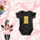 Deixe que o presente do 1º Dia dos Pais para o seu precioso bebê seja tão único quanto a sua preferência esportiva! A caligrafia dourada moderna em um fundo preto com espirais é perfeita para o seu bebê. A ilustração apresenta espirais douradas em um cenário preto. O TEXTO no centro tem uma borda floral e é personalizável.