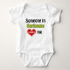 Vestir o seu pequeno apaixonado pelo Suriname com esta adorável camiseta bebê. Ela mostra a doce mensagem, 'Alguém no Suriname me ama', junto com um coração vibrante. Esta camisa fofa e confortável é perfeita para o visto diário, mostrando conexões familiares com o Suriname.