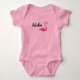 Esta é uma adorável roupa cor-de-rosa para uma menina, que é decorada com a saudação tropical, Aloha, e um flamingo rosa bonito, fazer perfeito para o verão.