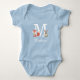 Body de bebê com monograma inicial da floresta, apresentando o nome da criança com dois pequenos animais da floresta sentados em cada lado da inicial do monograma, um filhote de raposa e um coelho doce. Um presente perfeito para guardar! Criado por Thisisnotme©