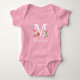Bodysuit de bebê com monograma inicial e nome da menina com animais da floresta fofos, apresentando dois animais da floresta fofinhos, um filhote de raposa e um coelho, sentados em ambos os lados do monograma inicial. Um presente perfeito para guardar! Criado por Thisisnotme
