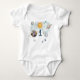 Celebre o marco especial do seu filho com este belo traje de aniversário de aniversário. Apresentando planetas imaginários, luas e estrelas em marinho e mira dourada. Este Aniversário do Espaço Exterior Galáxia Sun Moon Stars and Planets Baby Bodydress são perfeitos para uma simples festa de aniversário. O moderno design whimsical mostra um fundo de marinho-azul-aquarela adornado com um sol vibrante amarelo, lua de cinza sorridente, planetas de cor pastel e estrelas de brilho dourado dispersas.